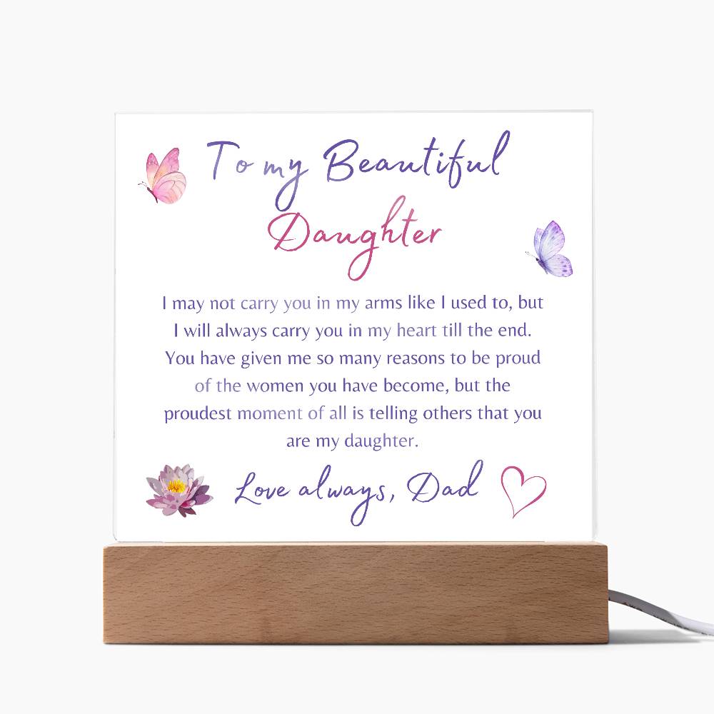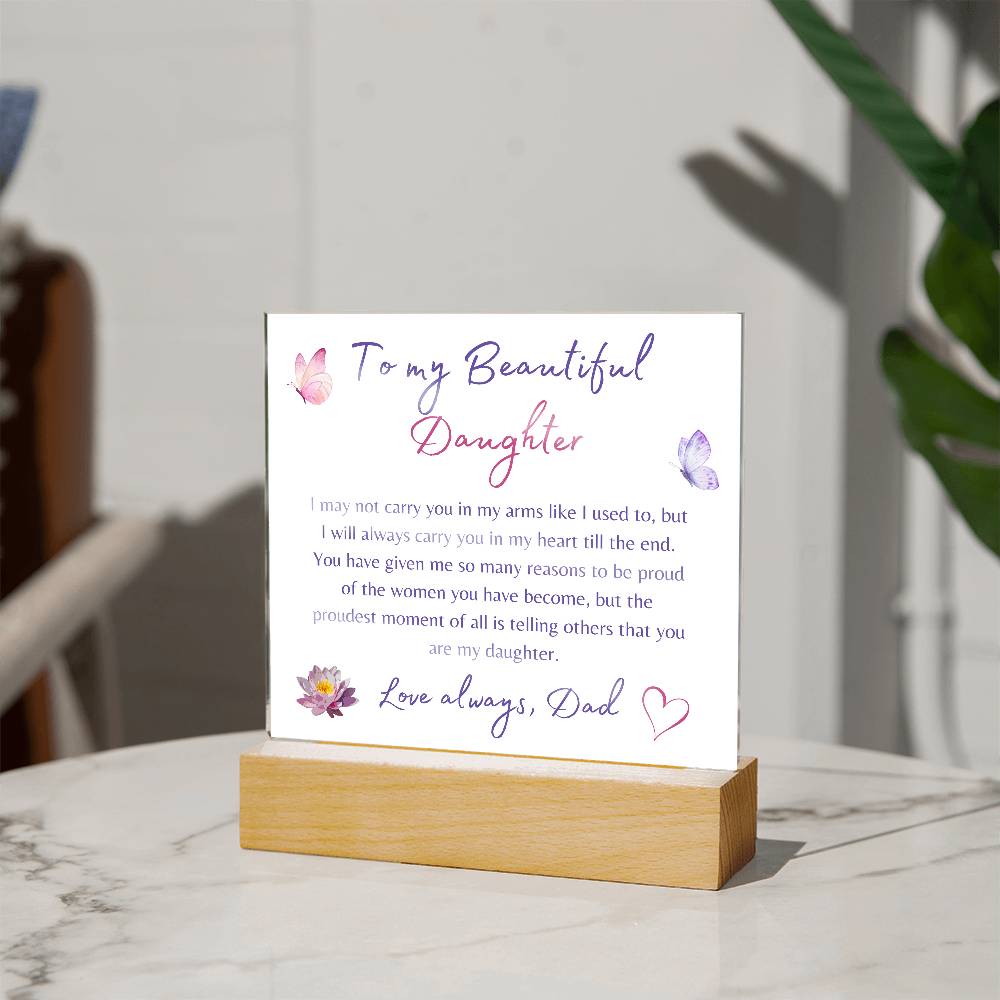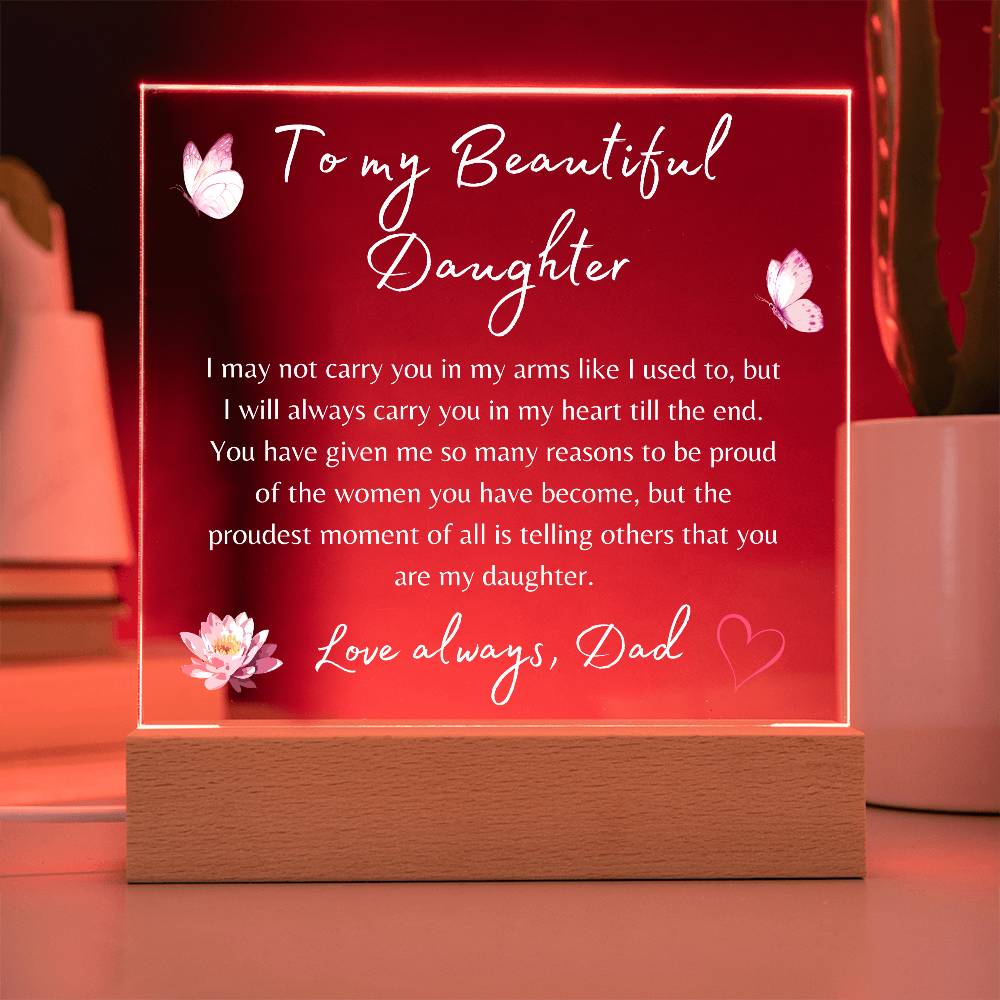 Combine modern technology and a heartfelt message with our Square Acrylic Plaque! This design is printed on crystal-clear premium acrylic and easily becomes the centerpiece of any room. And the contemporary design wouldn't be complete without its sleek wooden base, elevating the display that will instantly become a conversation starter. Create a memorable presentation when you upgrade to the LED wooden base! This is the ideal present for your beloved partner, family members, or dear friends on special occasions like anniversaries, birthdays, or any occasion where you want to express your love and appreciation in an unforgettable way. Let your loved ones know how much they mean to you by purchasing today!